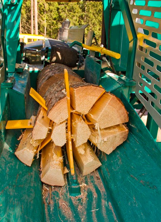 - Milžiniška jėga: 11 tonų skėlimo galia leidžia lengvai susitvarkyti su stambiais ir šakotais rąstais.