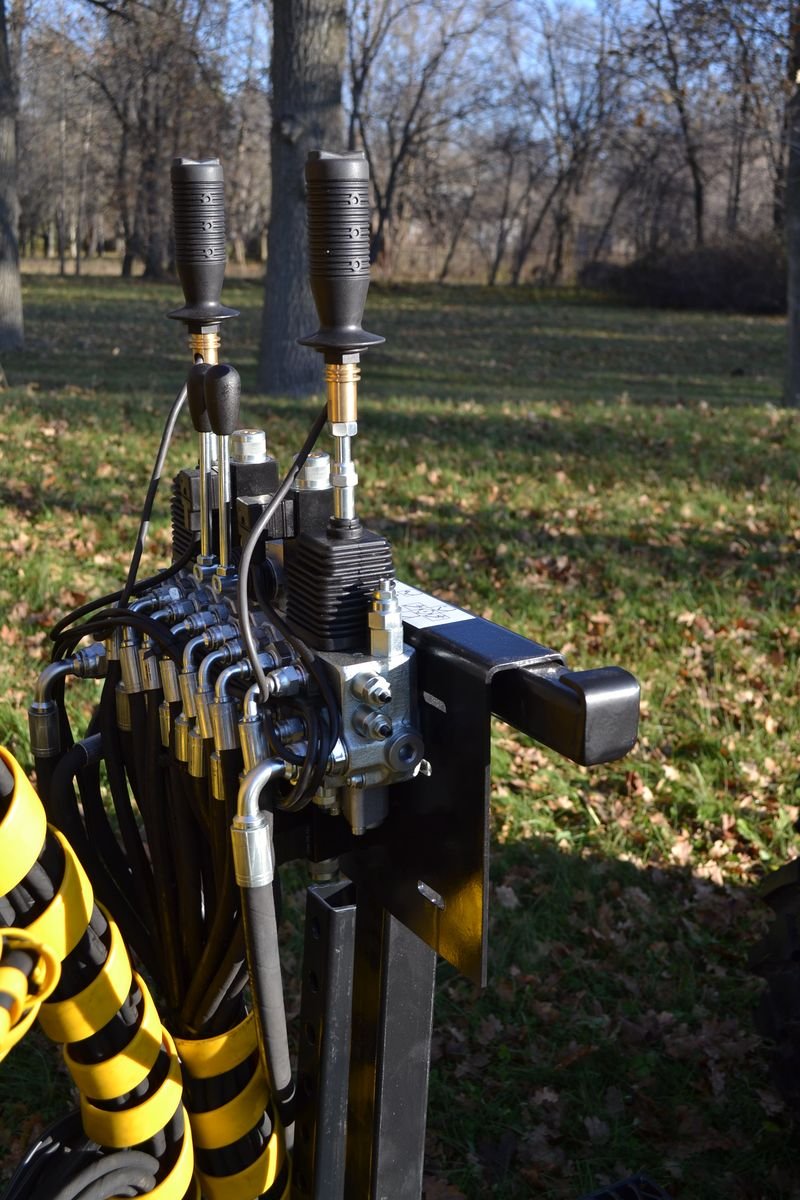 - Ergonomika: Įrenginys aprūpintas patogiomis valdymo rankenomis, kurios išdėstytos taip, kad operatorius galėtų atlikti kelias operacijas vienu metu, didindamas krovos darbų našumą.